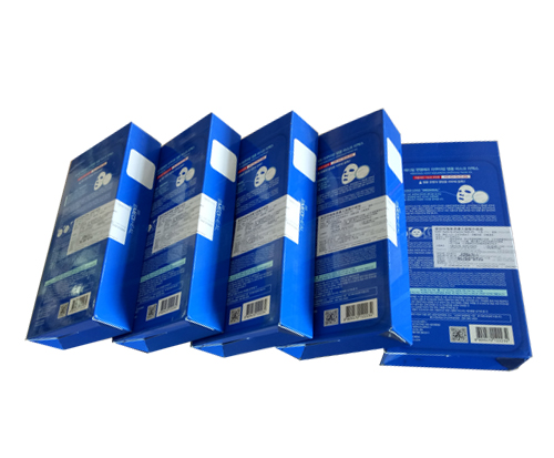 ◆ 應(yīng)用實(shí)例:面膜盒上下面、側(cè)面同時(shí)貼標(biāo)。